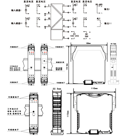 1、輸入信號:直流電壓、電流(訂貨時確定或配置編程器自行編程)