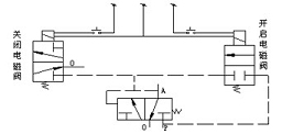① 開啟:在二位三通電磁先導(dǎo)閥的手動旋鈕處于與縱軸平行的“一”位置情況下,旋轉(zhuǎn)二位三通電磁先導(dǎo)閥的手動旋鈕,實現(xiàn)開啟手動操作,動作程序如自動開啟程序。