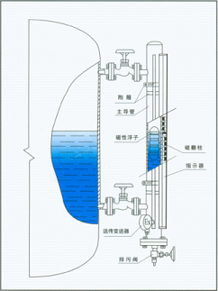 因運輸或其他振動,可能引起磁記憶開關接點狀態(tài)錯亂,在接線前,用磁鋼在連通管外上下拉動浮子,模擬動作一次,使磁記憶開關接點狀態(tài)恢復正常。然后再接線、投入使用。