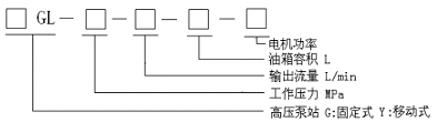 舉例:YGL-16-6-50-2.2:該型號為電站最常用型號,表示移動(dòng)式高壓泵站、工作壓力16mPa、輸出流量6L/min、油箱容量50L、電機(jī)功率2.2Kw.